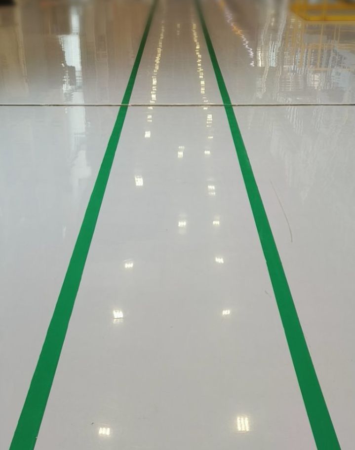 5S standardien mukaiset huomiomaalaukset, kuten palopostit sekä kulkureitit.
